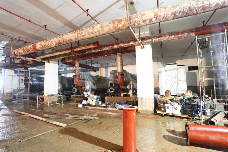 16臺(tái)美的MC系列降膜式高效10KV高壓離心機(jī)式冷水機(jī)組和400多臺(tái)組合式空調(diào)機(jī)組為商貿(mào)城再添輝煌,主機(jī)達(dá)到新國(guó)標(biāo)2級(jí)能效,取得國(guó)家節(jié)能認(rèn)證,通過AHRI認(rèn)證,新型三元流高效葉輪,高效電機(jī)技術(shù),壓縮機(jī)等熵效率達(dá)88.2%,雙級(jí)補(bǔ)氣增焓技術(shù)等,項(xiàng)目主機(jī)總配置冷量18000RT。